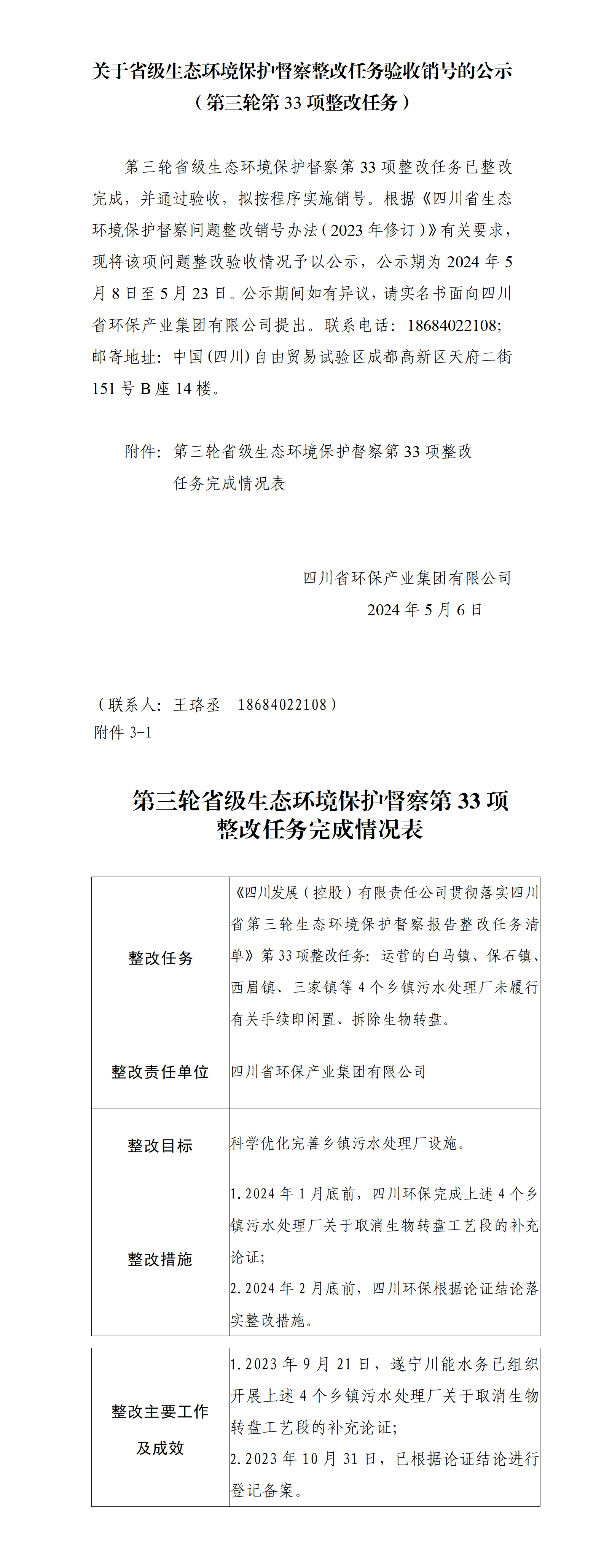 關于省級生態環境保護督察整改任務驗收銷號的公示 (第三輪第33項整改任務)